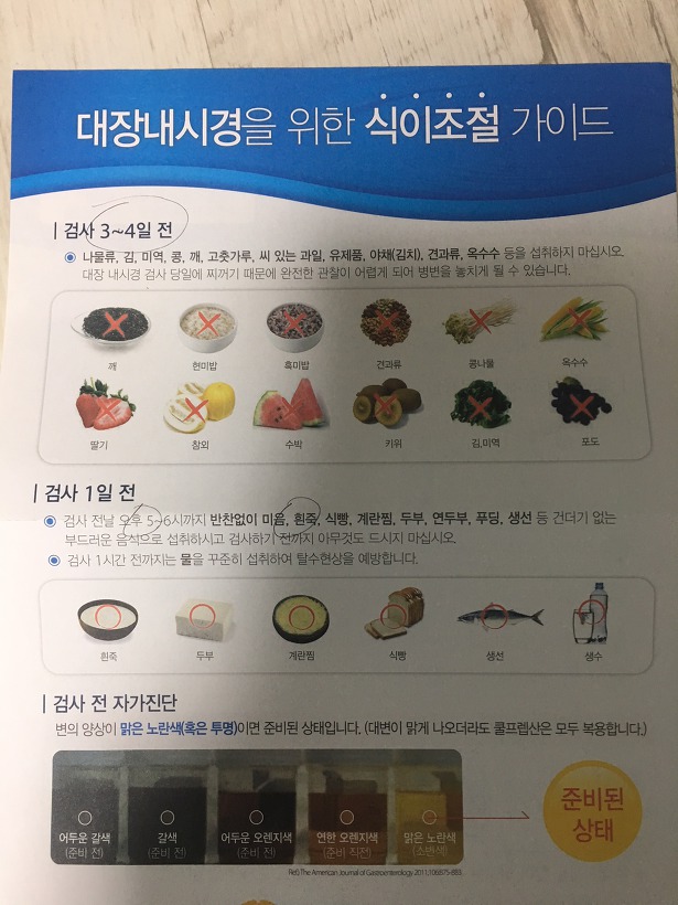 장을 다 비우고 마지막 대변 양상이 노랗게 소변처럼 나오는지, 맑게 나오는지 확인 후 내시경 전 병원에 알려야 하고요.