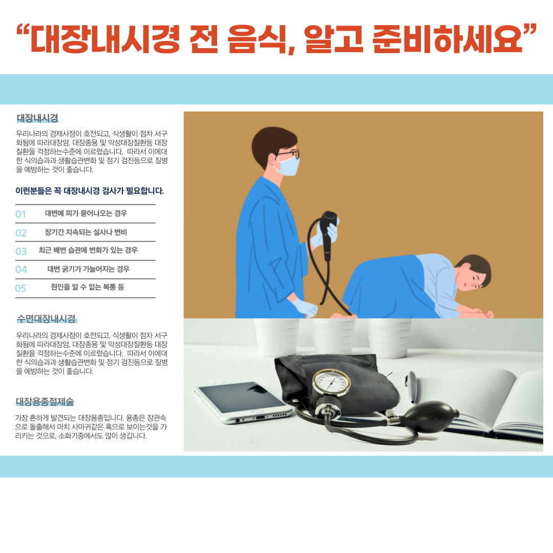 오늘 글에서는 대장내시경 전 먹어도 되는음식에 대하여 알아보도록 하겠습니다.