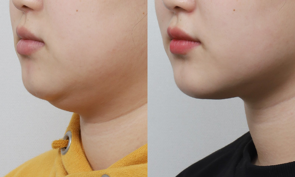 또한, 양악수술이나 턱 끝 수술을 하면서 아래턱 뼈를 후퇴시키거나 하는 등의 교정을 시행함에 따라 턱밑에 있는 근육이 늘어져 지방이 쌓이며 이중턱이 생겨나게 되요. 이러한 증상은 젊은 나이에 일어나는 이중턱의 주요 원인 중 하나라고도할 수 있어요.