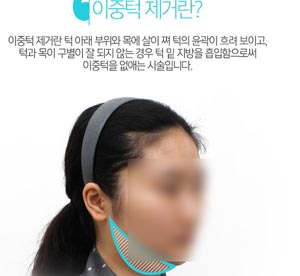 이중턱은 턱 아래쪽에 지방이 쌓이면서 턱이 두 개로 겹쳐 보이는 것을 말 해요. 이중턱은 얼굴을 짧고 넓게 만들어 얼굴을 나이 들어 보이도록 하는 인상을 줘요.
