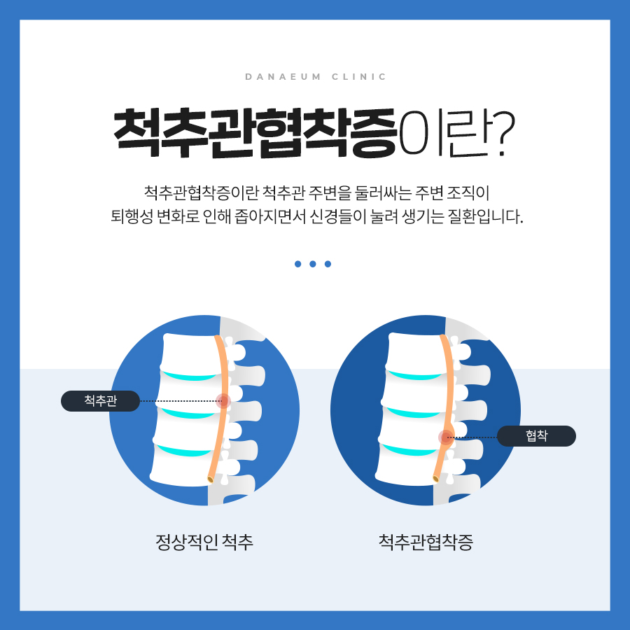오늘 글에서는 척추관 협착증 증상 치료방법에 대해서 알아보도록 하겠어요. 척추관 협착증은 퇴행성 디스크와 아울러 전형적인 퇴행성 척추질환입니다. 척추의 퇴행이 오래 진행되어 인대가 두꺼워지고 붓게 된다면 신경구멍이 좁아지며 척추관 협착증이 유발되요.