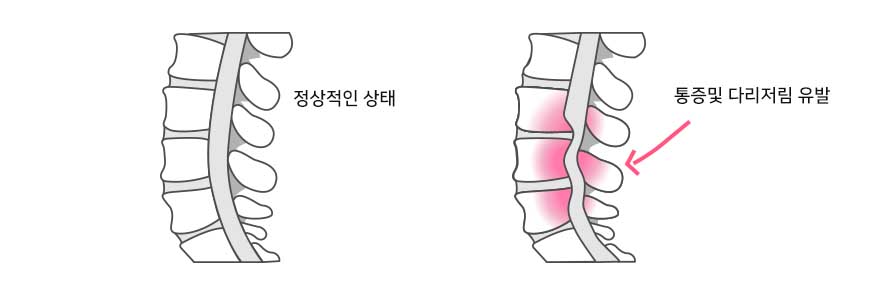 또한 척추관 압력으로 인해 근육 약화가 발생하여 근력이 약해지는 경우도 있다고 합니다.
