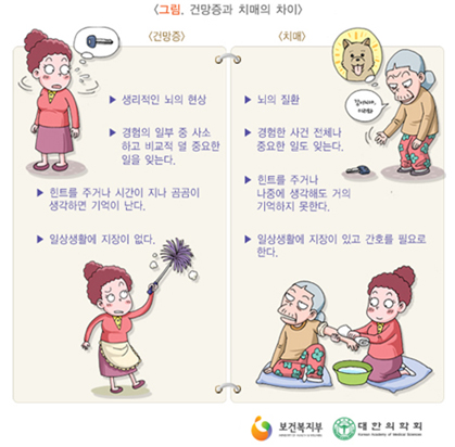 치매와 건망증은 다르고요. 건망증은 예사로 기억력의 저하를 호소하지만, 지남력이나 판단력 등은 정상이어서 일상적인 생활에 지장을 주지 않습니다.