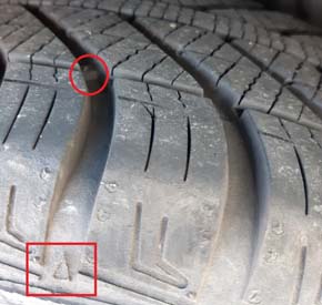 타이어 교체시기 - 타이어를 둘러봤을 때 갈라진 부분이 보이면 교체