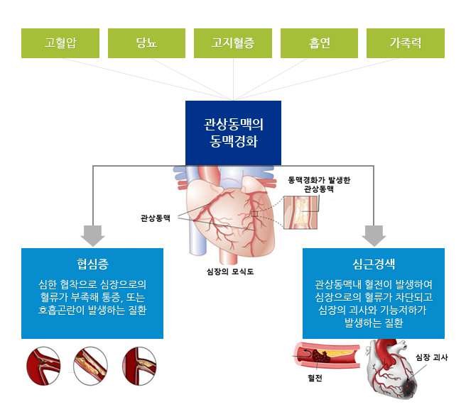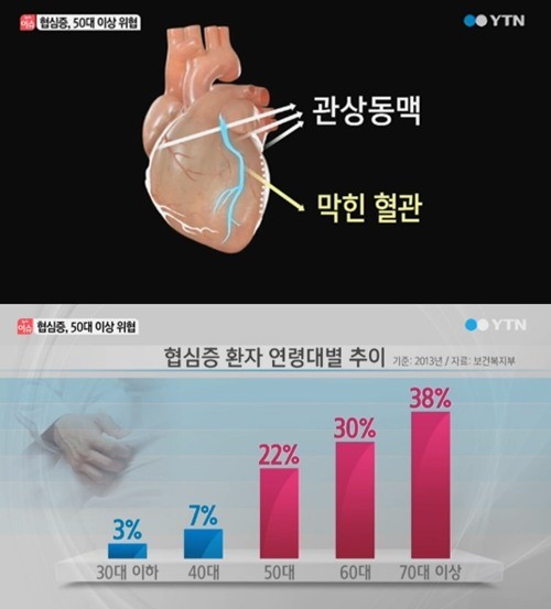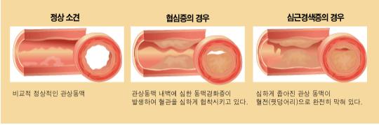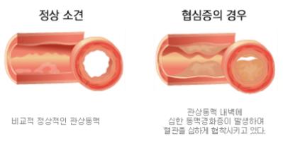 관상 동맥 내부의 동맥 경화성 변경는 사실상 20대 초반부터 진행되며, 혈관 면적의 70% 이상이 좁아지면 협심증 증상이 일어날수 있죠.