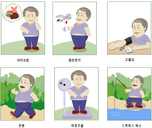 즉, 고혈압과 당뇨병의 관리를 빈틈이 없이 하고 금연하며 알맞은 체중을 보존하시는 것이 중요합니다. 또한 고지혈증이나 고콜레스테롤혈증이 발견되면 의사를 신방하여 치료 가부를 판단하게 되도록 합니다.