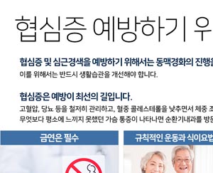협심증 환자는 금연, 저염식, 체중조절, 한결같은 운동, 스트레스 관리 등의 생활습관 개선을 통해 협심증 발생 위험을 줄일 수있다고 합니다.