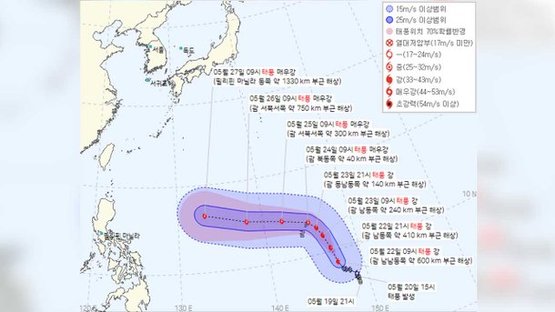 그리고 지난 10년간 5월에 발생한 태풍 중 한반도에 상륙한 사례는 없지만 상륙하지 않아도 태풍 수증기가 영향을 줄 수 있어 잘살펴야 한다고 간청했다고 합니다