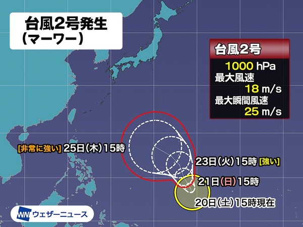 지난 20일 오후 3시쯤 발생한 2호 태풍 마와르 는 현재 중심기압 970hPa(헥토파스칼)의 엄청난 태풍이죠. 초속 35m(시속 126㎞)의 바람을 일으키고 있어요.