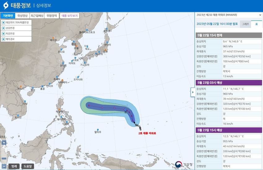 2호 태풍 마와르 경로 실시간 조회